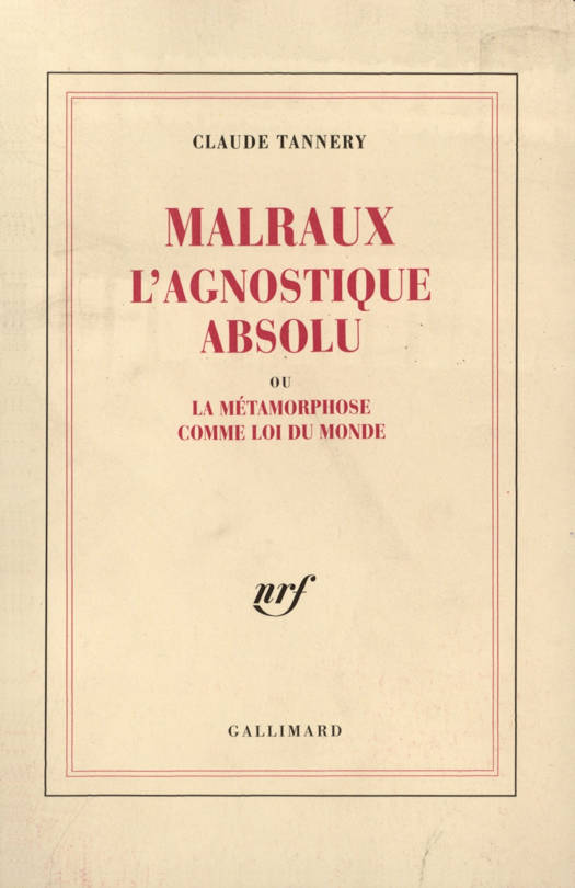 Jamais encore l'évolution de la pensée profonde, et même secrète, de l'auteur de La Condition humaine, de L'Espoir et de La Métamorphose des Dieux n'avait été suivie comme le fait ici Claude Tannery. Avec lui, on découvre d'un oeil nouveau l'itinéraire passionnant, et parfois douloureux, qui fut celui de Malraux. Dès les années 20, Malraux refuse l'individualisme informe qui tord déjà la race européenne et les essais de nihilisme ou d'absurde qui commencent à fleurir. Avec autant d'humour que de gravité, il s'en libère puis se lance dans l'action, bien qu'il ne soit pas un véritable homme d'action. Il cherche à accumuler des expériences qu'il espère transformer ensuite en conscience. Très vite, l'action révolutionnaire lui apparaîtra, elle aussi, comme une fossoyeuse de la Fraternité : elle restera une "Illusion Lyrique" aussi longtemps que n'auront pas été transformées la sensibilité et la culture qui donnent sa forme à l'homme. Malraux part alors à la quête du secret de la Métamorphose des Dieux afin d'y trouver le secret de la métamorphose de l'homme. Après une crise spirituelle qui faillit le terrasser, il reconnaît que l'Art ne peut à lui seul être un Antidestin, il accepte enfin et sans réserve que la Métamorphose soit la Loi du Monde et il triomphe définitivement de sa vieille ennemie : la Reine du Royaume Farfelu, la Mort. Il accède à la révélation de la Vie, qui seule mérite d'être interrogée, puis à la révélation de l'inconnu de l'impensable, celui qui n'a ni forme ni nom. Il devient l'Agnostique absolu vivant son agnosticisme comme une foi et il annonce le jaillissement spirituel qui, bientôt, pourrait enfin redresser l'homme face au destin et aux millénaires du ciel étoilé.