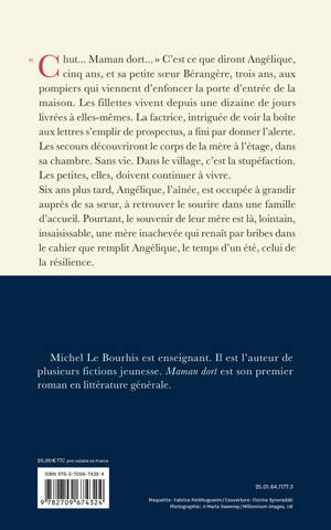 « Chut... Maman dort... » C’est ce que diront Angélique, cinq ans, et sa petite soeur Bérangère, trois ans, aux pompiers qui viennent d’enfoncer la porte d’entrée de la maison. Les fillettes vivent depuis une dizaine de jours livrées à elles-mêmes. La factrice, intriguée de voir la boîte aux lettres s’emplir de prospectus, a fini par donner l’alerte. Les secours découvriront le corps de la mère à l’étage, dans sa chambre. Sans vie. Dans le village, c’est la stupéfaction. Les petites, elles, doivent continuer à vivre. Six ans plus tard, Angélique, l’aînée, est occupée à grandir auprès de sa soeur, à retrouver le sourire dans une famille d’accueil. Pourtant, le souvenir de leur mère est là, lointain, insaisissable, une mère inachevée qui renaît par bribes dans le cahier que remplit Angélique, le temps d’un été, celui de la résilience.