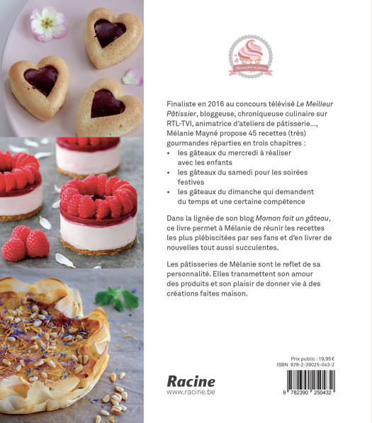 Finaliste en 2016 au concours téléviséLe Meilleur Pâtissier, bloggeuse, chroniqueuse culinaire sur RTL-TVi, animatrice d'ateliers de pâtisserie..., Mélanie Mayné propose 45 recettes (très) gourmandes réparties en trois chapitres :