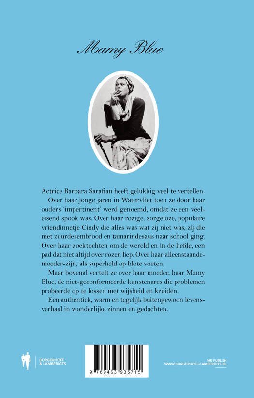 Maar bovenal vertelt ze over haar moeder, haar Mamy Blue, de niet-geconformeerde kunstenares ('een wezen van mijn soort maar dan in oudere versie') die problemen probeert op te lossen met wijsheid en kruiden. Een authentiek, warm en tegelijk buitengewoon levensverhaal.