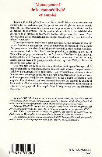 L'actualité se fait périodiquement l'écho de décisions de restructurations industrielles se traduisant par des plans sociaux de plus ou moins grande ampleur. Les décisions en ce sens sont le plus souvent motivées par les exigences de maintien - ou de restauration - de la compétitivité, contrainte prenant la forme d'une amélioration de la productivité du travail nécessitant une adaptation des effectifs employés. Les analyses s'appuient sur des observations et études de cas menées sur des terrains variés, tant au niveau de groupes multinationaux que de PME, en France et dans plusieurs autres pays.