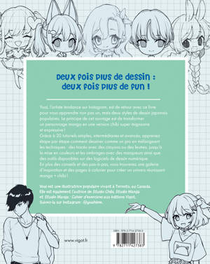 Yoai, l’artiste tendance sur Instagram, est de retour avec ce livre pour vous apprendre non pas un, mais deux styles de dessin japonais populaires. Le principe de cet ouvrage est de transformer un personnage manga en une version chibi super mignonne et expressive ! Grâce à 20 tutoriels simples, intermédiaires et avancés, apprenez étape par étape comment dessiner comme un pro en mélangeant les techniques : des tracés avec des crayons ou des feutres, jusqu’à la mise en couleurs et les ombrages avec des marqueurs ainsi que des outils disponibles sur des logiciels de dessin numérique. En plus des conseils et des pas-à-pas, vous trouverez une galerie d’inspiration et des pages à colorier pour créer un univers réunissant manga + chibi ! Yoai est une illustratrice populaire vivant à Toronto, au Canada. Elle est également l’autrice de Studio Chibi, Studio Manga et Studio Manga : Cahier d’exercices aux éditions Vigot. Suivez-la sur Instagram : @yoaihime.