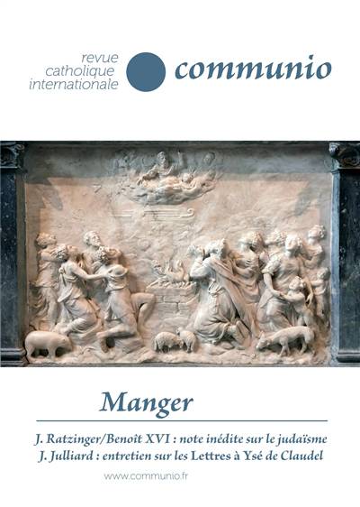 La nourriture est bien plus que le carburant dont le corps a besoin : c'est la cuisine qui fait l'homme, en révélant son rapport avec la création. La domine-t-il au point d'être en droit de tuer des animaux pour les manger ? Le christianisme n'a pas attendu le végétarisme actuel pour se poser la question. Éditorial Jean Duchesne Une nécessité bien plus que biologique Thème Jacques Bien assez à manger Servais pour tout le monde Hanna- Hanna-Barbara La nourriture sacrée Gerl-Falkovitz - manger le Saint ? Anthony Tout gouverner Pagliarini avec bonté André La nourriture carnée Wénin - réflexions à partir de la Torah Jean-Pierre Saint Paul Lémonon aux prises avec les idolothytes Alban Augustin, Massie les manichéens et la manducation de la chair Dominique-Marie L'abstinence de viande Dauzet dans la tradition monastique occidentale Vincent Manger Carraud de la viande _______________________________________________________________Signets Les dons et l'appel sans REPENTIR Joseph Ratzinger- À propos de l'article 4 de la déclaration Nostra Aetate Benoît XVI « Je ferai de toi une étoile » Jacques Julliard / Entretien sur les Lettres à Ysé de Paul Claudel Marie-Ève Benoteau-Alexandre