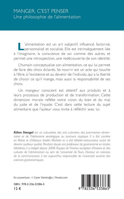L'alimentation est un art subjectif, influencé, factorisé, personnalisé et socialisé. Elle est intrinsèquement liée à l'imaginaire, la conscience de soi comme des autres, et permet une introspection, une redécouverte de son identité. L'humain conceptualise son alimentation, ce qui lui permet de faire des choix éclairés. Se nourrir est un acte qui touche à l'être, à l'existence et au devenir de l'individu, qui a la liberté de choisir ce qu'il mange, mais aussi la responsabilité de ses choix. Un mangeur conscient est attentif aux produits et à leurs processus de production et de transformation. Cette dimension morale reflète notre vision du bien et du mal, du juste et de l'injuste. C'est dans cette lecture du sujet alimentaire que l'auteur vous invite à réfléchir avec lui.