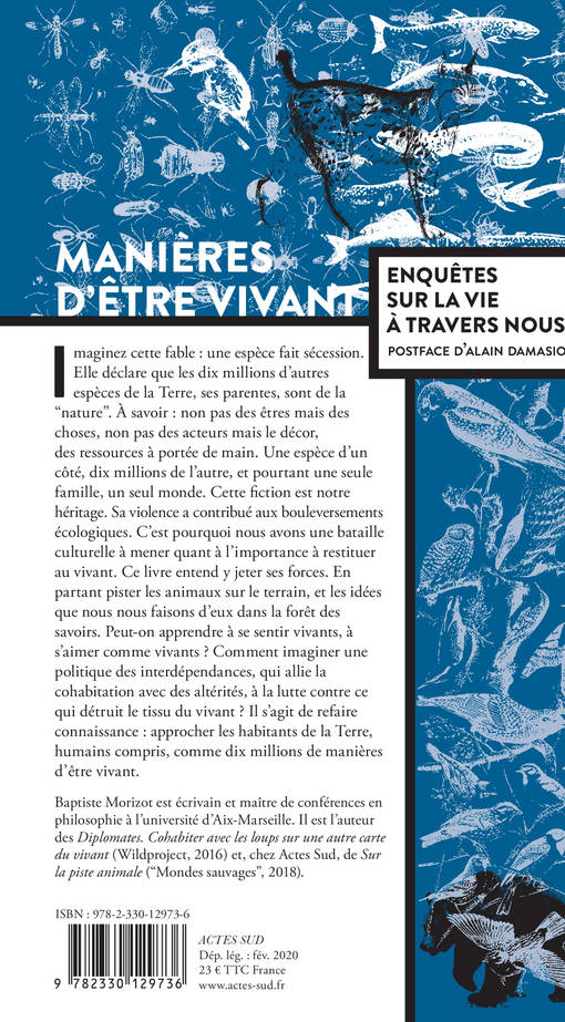 Imaginez cette fable : une espèce fait sécession. Elle déclare que les dix millions d'autres espèces de la Terre, ses parentes, sont de la "nature". À savoir : non pas des êtres mais des choses, non pas des acteurs mais le décor, des ressources à portée de main. Une espèce d'un côté, dix millions de l'autre, et pourtant une seule famille, un seul monde. Cette fiction est notre héritage. Sa violence a contribué aux bouleversements écologiques. C'est pourquoi nous avons une bataille culturelle à mener quant à l'importance à restituer au vivant. Ce livre entend y jeter ses forces. En partant pister les animaux sur le terrain, et les idées que nous nous faisons d'eux dans la forêt des savoirs. Peut-on apprendre à se sentir vivants, à s'aimer comme vivants ? Comment imaginer une politique des interdépendances, qui allie la cohabitation avec des altérités, à la lutte contre ce qui détruit le tissu du vivant ? Il s'agit de refaire connaissance : approcher les habitants de la Terre, humains compris, comme dix millions de manières d'être vivant.