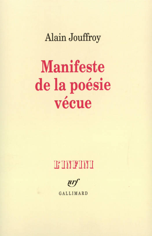 "Un manifeste écrit au temps de la pseudo-"fin des manifestes" pour transgresser l'esprit du temps, coïncider avec l'espace réel, celui où la poésie, avant de s'écrire, est un défi du corps à toutes les formes de manipulation de la pensée. Le contact direct avec l'extérieur absolu - le satori comme praxis du regard -, la poésie vécue comme être-au-monde." Alain Jouffroy.