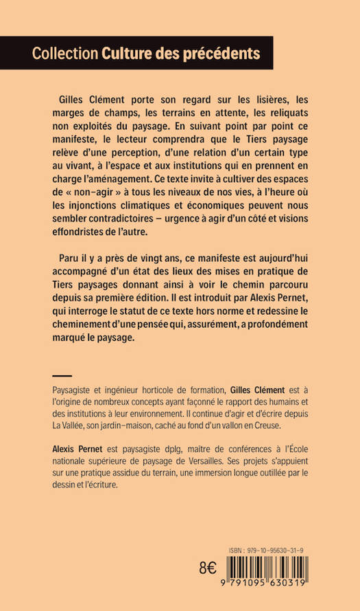 Paru il y a près de 20 ans, ce manifeste n'a pas pris une ride, tout comme la pertinence de son propos. Il est complété d'un texte plus récent de l'auteur qui revient 10 ans après sur le chemin parcouru. Il est préfacé par Alexis Pernet, paysagiste et maître de conférences à L'École nationale supérieure de paysage de Versailles. Si l'on cesse de regarder le paysage comme l'objet d'une industrie on découvre subitement - est-ce un oubli du cartographe, une négligence du politique ? - une quantité d'espaces indécis, dépourvus de fonction sur lesquels il est difficile de porter un nom. Cet ensemble n'appartient ni au territoire de l'ombre ni à celui de la lumière. Il se situe aux marges.