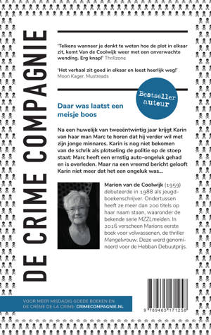 Na een huwelijk van tweeëntwintig jaar krijgt Karin van haar man Marc te horen dat hij verder wil met zijn jonge minnares. Karin is nog niet bekomen van de schrik als plotseling de politie op de stoep staat: Marc heeft een ernstig auto-ongeluk gehad en is overleden. Maar na een vreemd bericht gelooft Karin niet meer dat het een ongeluk was…
