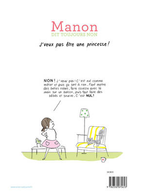 Non, c'est non : Manon ne veut pas être une princesse ! Plus tard, elle s'imagine plutôt peindre mille couleurs dans le ciel comme Sonia Delaunay, rouler aussi vite que Jeannie Longo, dessiner des habits comme Coco Chanel ou écrire des livres comme Marguerite Duras...