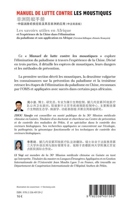Ce « Manuel de lutte contre les moustiques » explore l’élimination du paludisme à travers l’expérience de la Chine. Divisé en trois parties, il détaille les espèces de moustiques, leurs dangers et les méthodes de prévention. La première section décrit les moustiques, la deuxième vulgarise les connaissances sur la prévention du paludisme et la troisième retrace les étapes de l’élimination du paludisme en Chine, reconnues par l’OMS et appliquées avec succès dans certains pays africains.