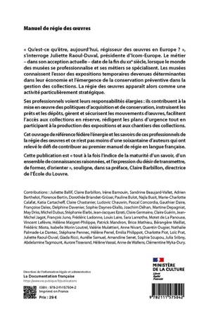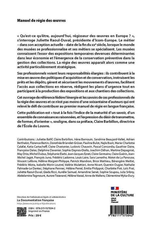 Conçu comme un manuel destiné aux professionnels des musées impliqués dans les missions de régie des œuvres et de production des expositions et par extension de gestion matérielle et documentaire des collections il décrira les tâches et activités de régie tout en apportant des connaissances utiles aux « bonnes pratiques » professionnelles.
