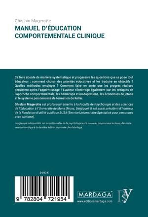 Ce livre aborde de manière systématique et progessive les questions que se pose tout éducateur: comment choisir des priorités éducatives et les traduire en objectifs ? Quelles méthodes employer ? Comment faire en sorte que les progrès réalisés persistent après l'apprentissage ? L'auteur s'interroge également sur les critiques de l'approche comportementale, les handicaps et inadaptations, les économies de jetons et le système personnalisé de formation de Keller.