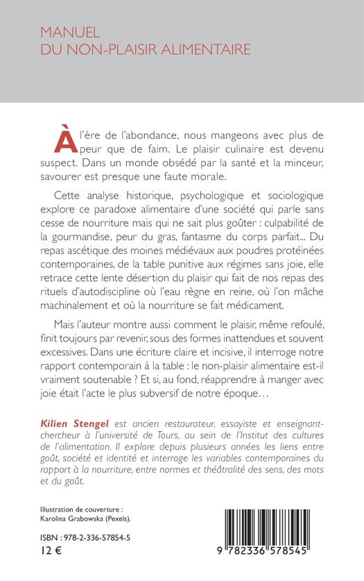 À l'ère de l'abondance, nous mangeons avec plus de peur que de faim. Le plaisir culinaire est devenu suspect. Dans un monde obsédé par la santé et la minceur, savourer est presque une faute morale. Cette analyse historique, psychologique et sociologique explore ce paradoxe alimentaire d'une société qui parle sans cesse de nourriture mais qui ne sait plus goûter: culpabilité de la gourmandise, peur du gras, fantasme du corps parfait... Du repas ascétique des moines médiévaux aux poudres protéinées contemporaines, de la table punitive aux régimes sans joie, elle retrace cette lente désertion du plaisir qui fait de nos repas des rituels d'autodiscipline où l'eau règne en reine, où l'on mâche machinalement et où la nourriture se fait médicament. Mais l'auteur montre aussi comment le plaisir, même refoulé, finit toujours par revenir, sous des formes inattendues et souvent excessives. Dans une écriture claire et incisive, il interroge notre rapport contemporain à la table: le non-plaisir alimentaire est-il vraiment soutenable ? Et si, au fond, réapprendre à manger avec joie était l'acte le plus subversif de notre époque...
