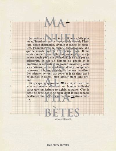 Livre de photographies agencées sous la forme d’un abécédaire, "Manuel pour les alphabètes" met en œuvre ce propos de Gilles Deleuze : « Toutes les images sont littérales, et doivent être prises littéralement. Quand une image est plane, il ne faut surtout pas lui redonner, même en esprit, une profondeur qui la défigurerait : c’est cela qui est difficile, saisir les images dans leur donnée immédiate.(…) De toute façon une image ne représente pas une réalité supposée, elle est à elle-même toute sa réalité. » (Entretien avec Hervé Guibert, Le Monde, 6 octobre 1983.)