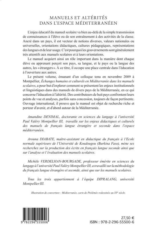 L'enjeu éducatif du manuel scolaire dépasse la simple transmission de connaissances à l'élève. Il est un vecteur de notions diverses, valeurs nationales ou universelles, orientations didactiques, cultures pédagogiques, jouant ainsi un rôle dans la manière dont chaque élève appréhende son pays, sa langue, et le pays ou la langue des autres. Cet ouvrage explore les enjeux institutionnels et linguistiques dans les manuels de divers pays de la Méditerranée, concernant l'éducation à l'altérité.