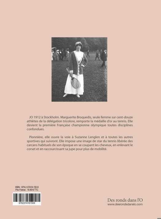 1912 JO à Stockholm. Marguerite Broquedis, seule athlète féminine sur 112 participants de la délégation française, remporte la médaille d’Or au Tennis. Elle devient la première Française médaillée d’Or aux JO toutes disciplines confondues. Pionnière, elle ouvre la voie aux futures Suzanne Lenglen et bien d’autres et elle impose une image de sportive libérée des carcans habituels jusqu’alors en se coupant les cheveux, en enlevant le corset et en racourcissant sa jupe pour plus de mobilité. Malheureusement, la première guerre Mondiale stoppe sa carrière, sa dernière victoire sera celle qu’elle remporte aux Championnats de France en 1914 contre Suzanne Lenglen Récit librement inspiré de la vie de Marguerite Broquedis Album photos en fin d’album.