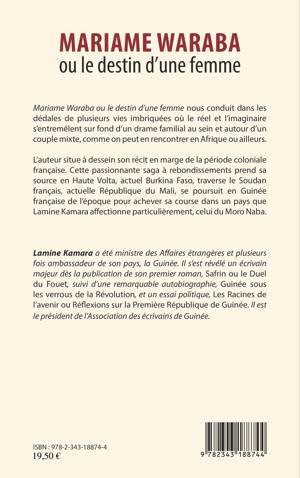 Mariame Waraba ou le destin d'une femme nous conduit dans les dédales de plusieurs vies imbriquées où le réel et l'imaginaire s'entremêlent sur fond d'un drame familial au sein et autour d'un couple mixte, comme on peut en rencontrer en Afrique ou ailleurs. L'auteur situe son récit en marge de la période coloniale française.
