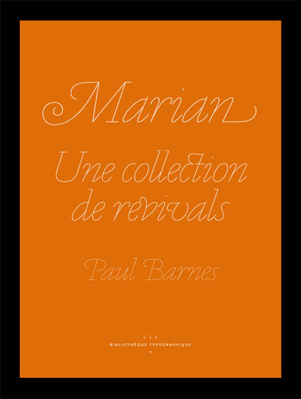 Marian, un des projets les plus ambitieux du designer anglais Paul Barnes, est une collection composée de neuf caractères (romain et italique) destinés au titrage et à l’édition. Elle rend hommage aux maîtres anciens qui l’ont inspiré (Granjon, Fournier, Baskerville, Bodoni...) à l’aide d’un concept audacieux : la réduction du caractère à une structure monolinéaire, minimale. Barnes présente dans cet essai illustré sa vision moderniste et le processus de travail initié pour dégager l’essentialité de la forme sans la priver de sa pertinence historique et de ses qualités originelles.