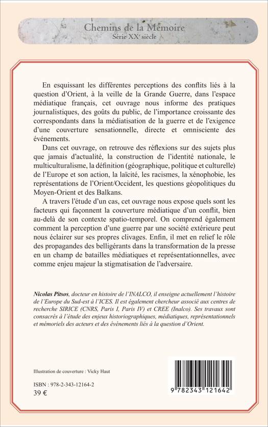 En esquissant les différentes perceptions des conflits liés à la question d'Orient, à la veille de la Grande Guerre, dans l'espace médiatique français, cet ouvrage nous informe des pratiques journalistiques, des goûts du public, de l'importance croissante des correspondants dans la médiatisation de la guerre et de l'exigence d'une couverture sensationnelle, directe et omnisciente des évènements. On retrouve des sujets plus que jamais d'actualité, la construction de l'identité nationale, le multiculturalisme, la définition de l'Europe et son action, la laïcité, le racisme, la xénophobie, les représentations de l'Orient-Occident, les questions géopolitiques du Moyen-Orient et des Balkans.