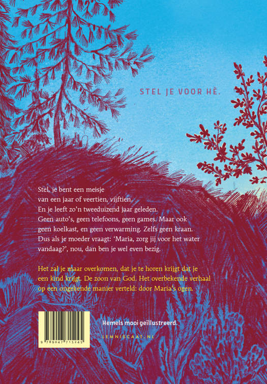 Stel je voor hè. Stel, je bent een meisje van een jaar of veertien, vijftien. En je leeft zo’n tweeduizend jaar geleden. Geen auto’s, geen smartphones, geen games. Maar ook geen koelkast, en geen verwarming. Zelfs geen kraan. Dus als je moeder vraagt: ‘Maria, zorg jij voor het water vandaag?’, nou, dan ben je wel even bezig.