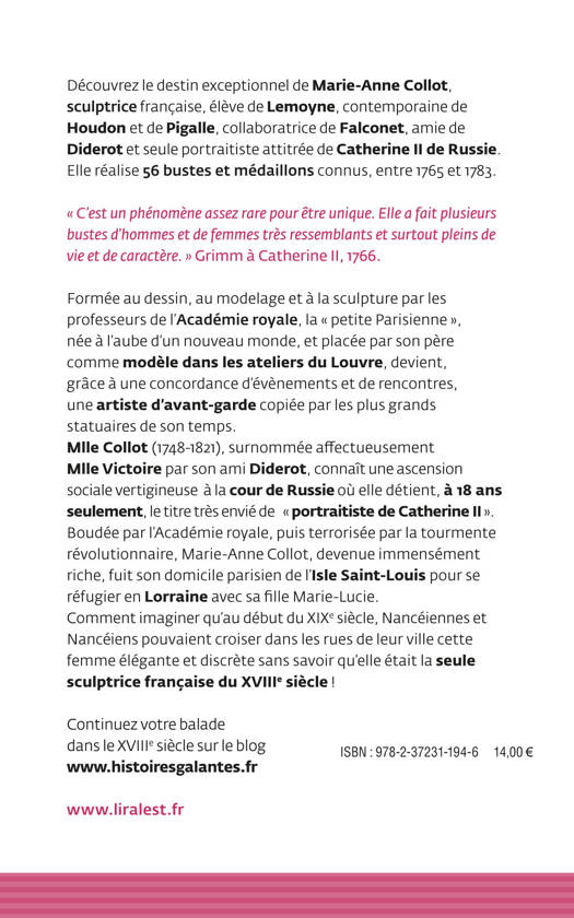 Le destin exceptionnel de Marie-Anne Collot seule sculptrice française du XVIIIè siécle, amie de Diderot, et portraitiste de Catherine II.