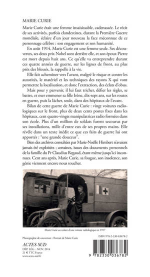 Marie Curie était une femme insaisissable, cadenassée. Le récit de ses activités, parfois clandestines, durant la Première Guerre mondiale, éclaire d'un jour nouveau la face méconnue de ce personnage célèbre : son engagement et son humanité.