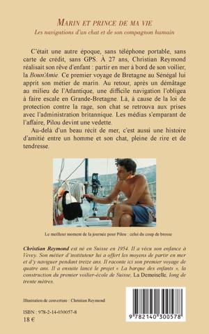 C'était une autre époque, sans téléphone portable, sans carte de crédit, sans GPS. À 27 ans, Christian Reymond réalisait son rêve d'enfant: partir en mer à bord de son voilier, la Boun'Amie. Ce premier voyage de Bretagne au Sénégal lui apprit son métier de marin. Au retour, après un démâtage au milieu de l'Atlantique, une difficile navigation l'obligea à faire escale en Grande-Bretagne. Là, à cause de la loi de protection contre la rage, son chat se retrouva aux prises avec l'administration britannique. Les médias s'emparant de l'affaire, Pilou devint une vedette. Au-delà d'un beau récit de mer, c'est aussi une histoire d'amitié entre un homme et son chat, pleine de rire et de tendresse.