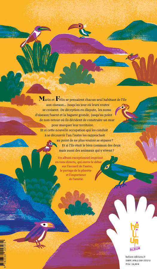 Marin et Félix se pensaient seuls habitants de l'Île aux oiseaux. De déception en dispute, ils décident de tracer une frontière entre leurs territoires et de construire un mur. Mais se pourrait-il que cette nouvelle occupation qu'ils partagent quotidiennement, finissent par les rapprocher au point de ne plus vouloir de ce projet ?