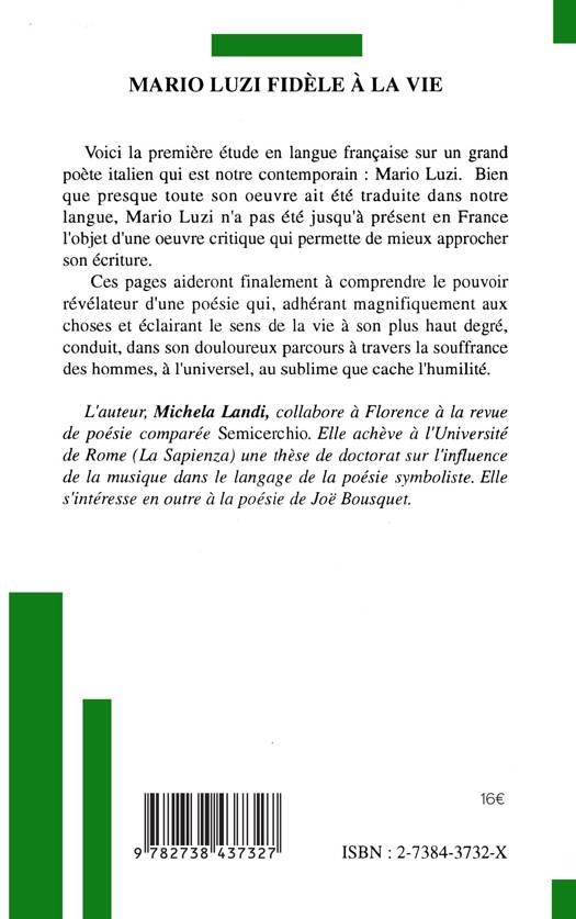 Voici la première étude en langue française sur un grand poète italien qui est notre contemporain : Mario Luzi. Bien que presque toute son oeuvre ait été traduite dans notre langue, Mario Luzi n'a pas été jusqu'à présent en France l'objet d'une oeuvre critique qui permette de mieux approcher son écriture.
