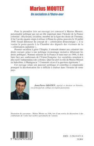 Marius Moutet eut un rôle important dans l'histoire de la France coloniale : dreyfusard, socialiste, membre de la ligue des droits de l'homme, il fut l'un des quatre-vingts à refuser à Pétain les pleins pouvoirs le 10 juillet 1940. Grand défenseur du concept de "colonisation démocratique", il se voulut le porte-parole à la Chambre des députés des victimes de la "colonisation capitaliste". Cet ouvrage relate son parcours politique et contribue à comprendre pourquoi la décolonisation fut si difficile à réaliser dans l'histoire de notre pays.