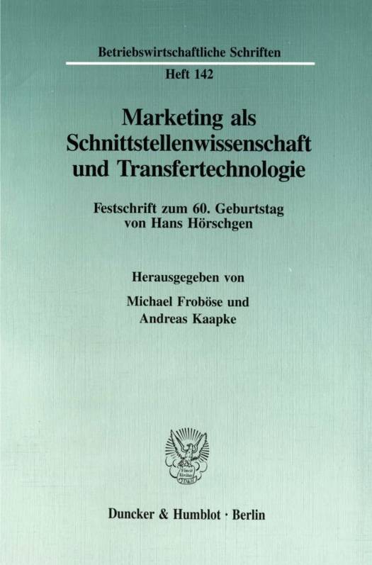 Prof. Dr. Hans Hörschgen, dessen wissenschaftliches Werk anläßlich seines 60. Geburtstags mit der vorliegenden Festschrift gewürdigt werden soll, hat beide Entwicklungsrichtungen des Marketing-Ansatzes nachhaltig gefördert. Mit diesen Entwicklungslinien setzen sich auch die einzelnen Beiträge aus unterschiedlichen Blickwinkeln auseinander.