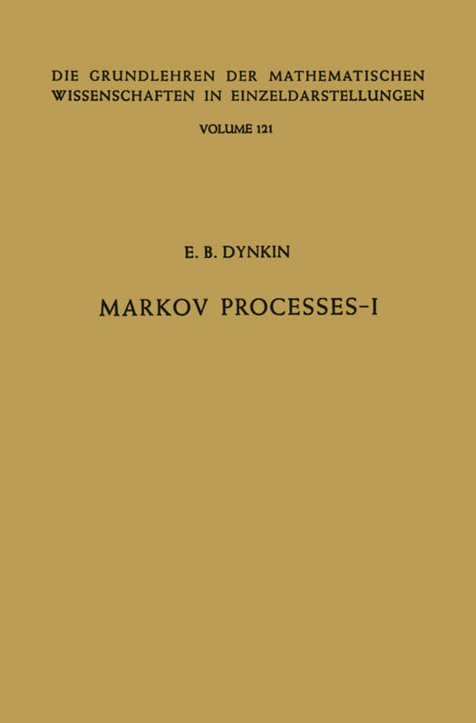 The modem theory of Markov processes has its origins in the studies of A. A. MARKOV (1906-1907) on sequences of experiments "connected in a chain" and in the attempts to describe mathematically the physical phenomenon known as Brownian motion (L. BACHELlER 1900, A. EIN- STEIN 1905). The first correct mathematical construction of a Markov process with continuous trajectories was given by N. WIENER in 1923. (This process is often called the Wiener process.) The general theory of Markov processes was developed in the 1930's and 1940's by A. N. KOL- MOGOROV, W. FELLER, W. DOEBLlN, P. LEVY, J. L. DOOB, and others. During the past ten years the theory of Markov processes has entered a new period of intensive development. The methods of the theory of semigroups of linear operators made possible further progress in the classification of Markov processes by their infinitesimal characteristics. The broad classes of Markov processes with continuous trajectories be- came the main object of study. The connections between Markov pro- cesses and classical analysis were further developed. It has become possible not only to apply the results and methods of analysis to the problems of probability theory, but also to investigate analytic problems using probabilistic methods. Remarkable new connections between Markov processes and potential theory were revealed. The foundations of the theory were reviewed critically: the new concept of strong Markov process acquired for the whole theory of Markov processes great importance.