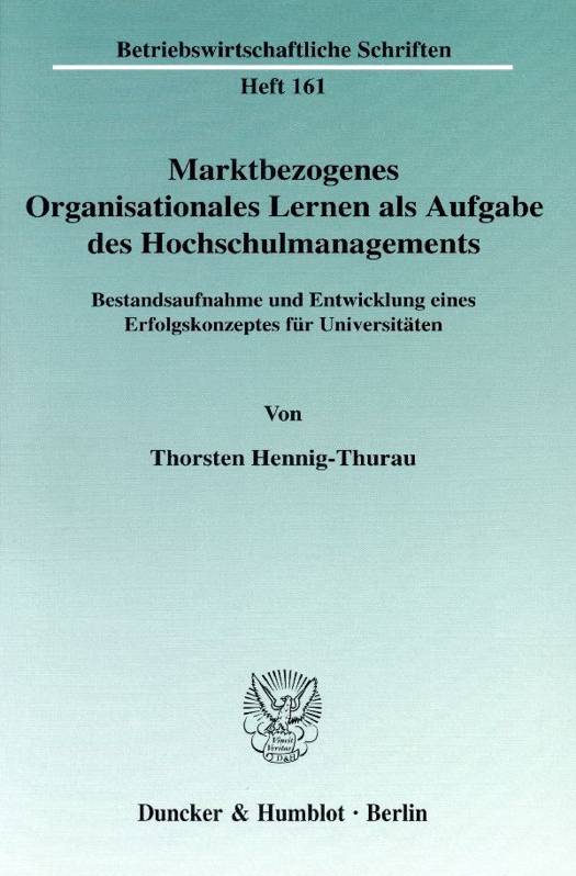 Mit dem Marktorientierten Organisationalen Lernen stellt Thorsten Hennig-Thurau einen solchen dringend erforderlichen Ansatz vor. Der Autor, Hochschullehrer für Marketing und Medien an der Bauhaus-Universität Weimar, entwickelt ein Modell der »lernenden Hochschule«, in dem er bestehende Überlegungen zum Organisationslernen und zur Marktorientierung in den Kontext des Hochschulmanagements überträgt und vor dem Hintergrund der dort wirkenden, spezifischen Rahmenbedingungen weiterentwickelt.
