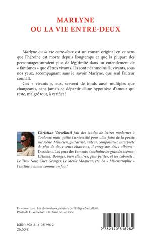 Marlyne ou la vie entre-deux est un roman original en ce sens que l'héroïne est morte depuis longtemps et que la plupart des personnages auraient plus de légitimité dans un entendement de fantômes que d'êtres vivants. Ils sont néanmoins là, vivants, sous nos yeux, accompagnant sans le savoir Marlyne, que seul l'auteur connaît. Ces vivants, eux, servent de fonds aussi multiples que changeants, sans jamais se départir d'une hypothèse d'amour qui reste, malgré tout, à vérifier !