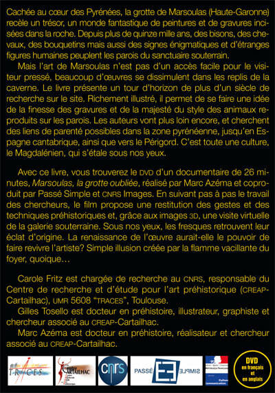 Livre et dvd sur la grotte ornée Marsoulas située en Haute-Garonne, datant d'environ 13000 ans. Nombreuses reconstitutions en 3d et visite virtuelle de la grotte telle qu'elle se présentait à l'époque. Images magnifiques de l'un des plus beaux chefs-d'oeuvre de l'histoire de l'humanité.