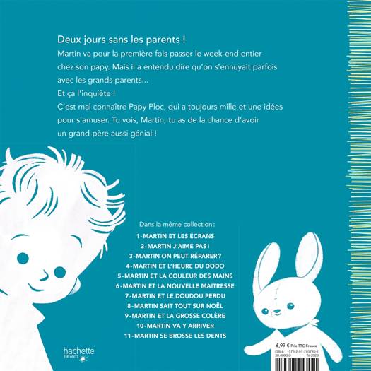 Deux jours sans les parents ! Martin va pour la première fois passer le week-end entier chez son papy. Mais il a entendu dire qu'on s'ennuyait parfois avec les grands-parents... Et ça l'inquiète ! C'est mal connaître Papy Ploc, qui a toujours mille et une idées pour s'amuser. Tu vois, Martin, tu as de la chance d'avoir un grand-père aussi génial !