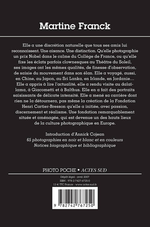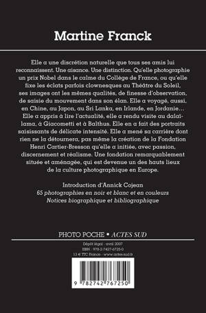 Membre de l'agence Magnum, Martine Franck est imprégnée d'une culture photographique internationale qui confère à sa vision une dimension spontanément universelle. Empreinte de classicisme formel, il émane de son oeuvre une dimension littéraire directement issue de sa volonté de faire de toute photographie une source de réflexion. Sa complicité durable avec Ariane Mouchkine et son Théâtre du Soleil ou, plus récemment, Bob Wilson, en font une des plus subtiles photographes du monde théâtral.