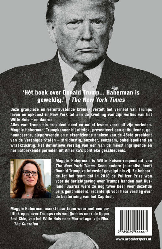Alles wat Trump als president deed en naliet kwam voort uit zijn verleden. Maggie Haberman, Trumpkenner bij uitstek, presenteert een onthullende, genuanceerde, diepgravende en nietsontziende analyse van de 45ste president van de Verenigde Staten – strijdlustig, onzeker, eenzaam, onheilspellend en wraakzuchtig. Het definitieve verslag van een van de meest ingrijpende en normafbrekende perioden uit Amerika’s politieke geschiedenis.