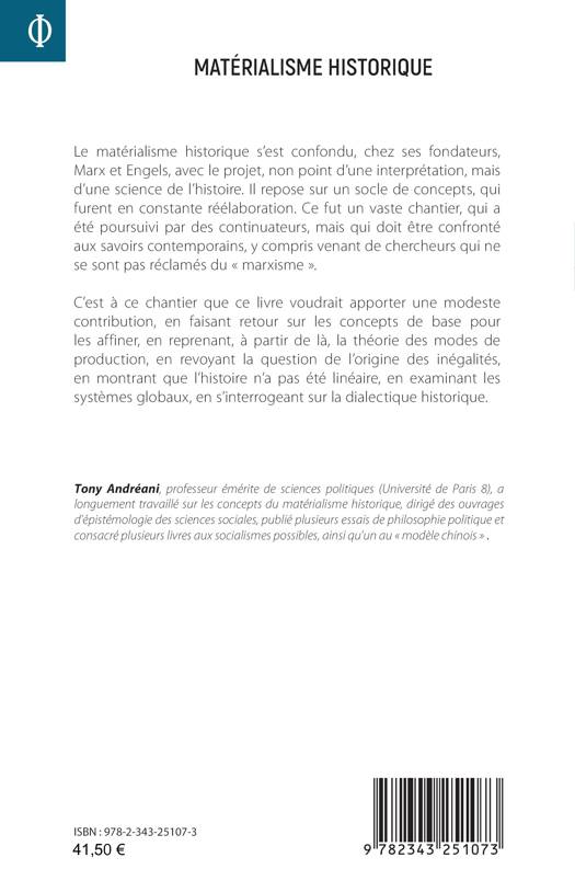 Le matérialisme historique s’est confondu, chez ses fondateurs, Marx et Engels, avec le projet, non point d’une interprétation, mais d’une science de l’histoire. Il repose sur un socle de concepts, qui furent en constante réélaboration. Ce fut un vaste chantier, qui a été poursuivi par des continuateurs, mais qui doit être confronté aux savoirs contemporains, y compris venant de chercheurs qui ne se sont pas réclamés du « marxisme ». C’est à ce chantier que cet ouvrage voudrait apporter une modeste contribution, en faisant retour sur les concepts de base pour les affiner, en reprenant, à partir de là, la théorie des modes de production, en revoyant la question de l’origine des inégalités, en montrant que l’histoire n’a pas été linéaire, en examinant les systèmes globaux, en s’interrogeant sur la dialectique historique.