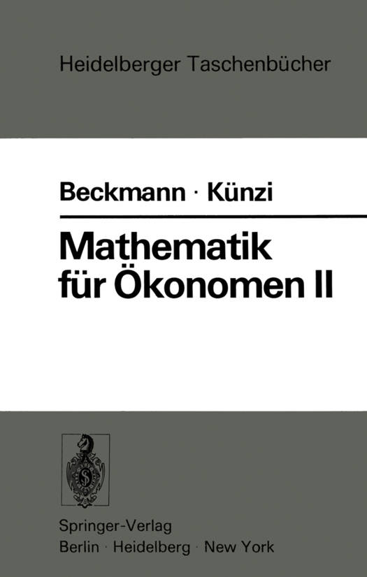 Hiermit legen wir den zweiten Band der geplanten drei Teile der "Mathematik für Ökonomen" vor. Wie beim Band I über die Analysis von Funktionen einer Veränderlichen haben wir eine auf die besonderen Bedürfnisse des Studiums der Wirtschaftswissen- schaft und der Unternehmensforschung ausgerichtete Darstellung der linearen Algebra gewählt. Dabei haben wir uns bemüht, die mathematische Theorie mit Anwendungen aus diesen beiden Dis- ziplinen zu verbinden. Beim vorliegenden Stoffgebiet ist es sinnvoll, zunächst in den Abschnitten 1-6 die Grundlagen zu schaffen und die Anwendungen in den Abschnitten 7-9 zusammenhängend zu bringen. Infolge der rasch fortschreitenden Entwicklung der mathe- matischen Wirtschaftswissenschaft und der Unternehmensfor- schung können wir keinen Anspruch auf Vollständigkeit der typi- schen Modelle erheben, haben aber auf die Auswahl der Beispiele besondere Sorgfalt verwendet. Es hat sich als zweckmäßig erwiesen, die Ausführungen über die lineare Algebra vor die Behandlung der Funktionen mit mehre- ren Veränderlichen zu stellen, für die nun der Band III vorgesehen ist. Zum Studium dieses Bandes sind aber keine Kenntnisse der Differential- und Integralrechnung notwendig. Der Inhalt des vorliegenden Bandes beruht auf Aufzeichnungen von Vorlesungen, die H.P. KÜNZI während mehrerer Jahre an der Universität Zürich gehalten hat. Die Abschnitte mit den ökono- mischen Anwendungen stammen zum großen Teil aus Kursen von M. BEcKMANN, die an der Brown University, der Universität Bonn und der Technischen Universität München veranstaltet wurden. Die eigentliche Ausarbeitung des Textes, die zahlreichen Ergän- zungen und die geschicktere Anordnung des Stoffes hat Herr Dr.