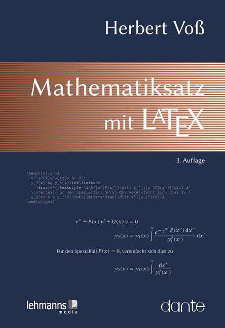 Welches Paket, welcher Befehl, welche Syntax? Dieses Buch zeigt, wie man einfache Gleichungen oder umfangreiche mathematische Abhandlungen erstellen kann. Anhand vieler Beispiele wird erläutert, wie das Layout von Formeln in einer Textzeile oder in einem eigenen Absatz erstellt wird. Eine Liste der verfügbaren Symbole findet sich ebenso wie eine Aufstellung von zusätzlichen Paketen. Für die wichtigsten Pakete werden Beispiele angegeben. Insbesondere die zusätzlichen Pakete der American Mathematical Society (AMS) werden ausführlich behandelt.
