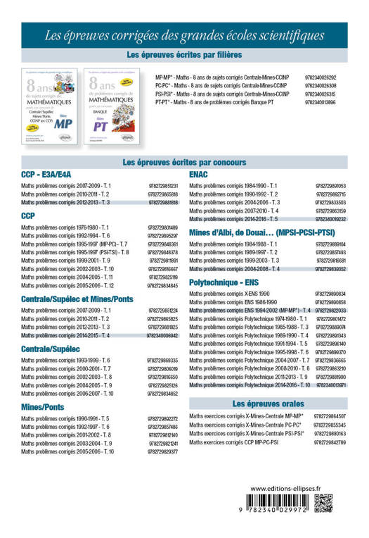 Outil de travail en vue de la préparation aux concours. 300 exercices proposés aux concours MInes/Ponts et Centrale/Supélec dont ceux de Centrale en Python. Pour les étudiants des classes préparatoires scientifiques de seconde année et des candidats aux concours du CAPES et de l'agrégation.