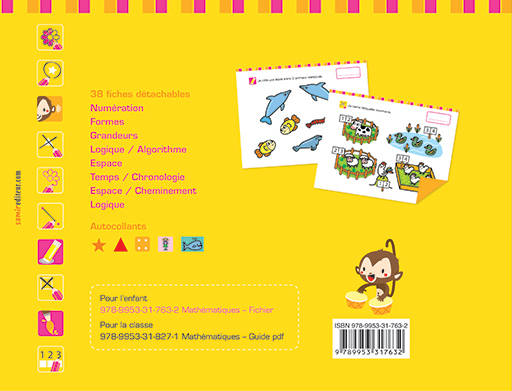 38 fiches détachables : Numération. Formes. Grandeurs. Logique / Algorithme. Espace. Temps / Chronologie. Espace / Cheminement. Logique.
