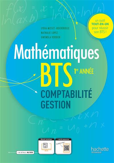 Ce manuel couvre l'ensemble du programme de mathématiques du BTS de comptabilité et de gestion 1re année. Avec plus de 150 exercices de difficulté progressive. Un QR code donne accès à des ressources complémentaires.