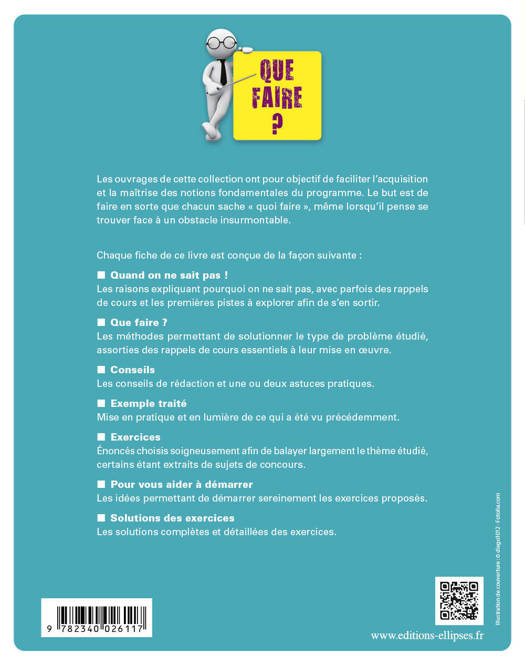 Les ouvrages de cette collection ont pour objectif de faciliter l’acquisition et la maîtrise des notions fondamentales du programme. Le but est de faire en sorte que chacun sache « quoi faire », même lorsqu’il pense se trouver face à un obstacle insurmontable.