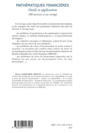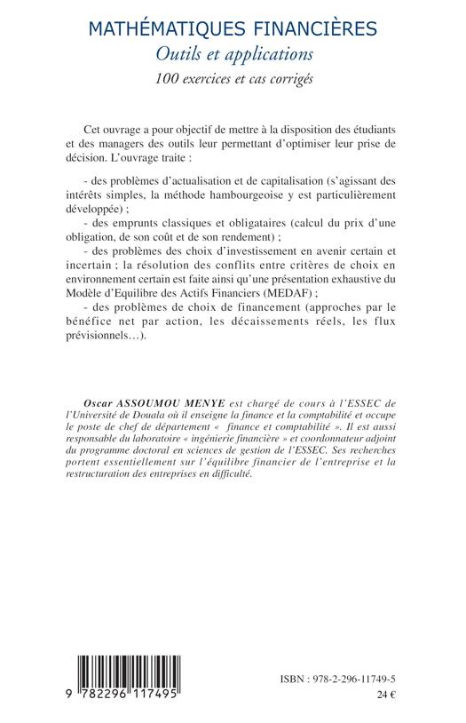 Cet ouvrage a pour objectif de mettre à la disposition des étudiants et des managers des outils leur permettant d'optimiser leur prise de décision. L'ouvrage traite des problèmes d'actualisation et de capitalisation, des emprunts classiques et obligataires, des problèmes des choix d'investissement en avenir certain et incertain et des problèmes de choix de financement.
