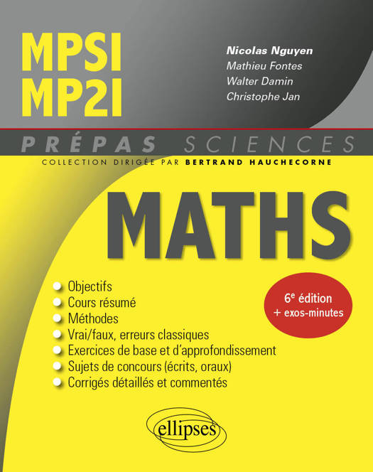 La 6e édition de cet ouvrage a pour objectifs de permettre aux étudiants en MPSI/MP2I de réviser leur cours de Mathématiques et de l'assimiler par la mise en application des notions. Dans chaque chapitre, correspondant à peu près à une semaine de cours, le lecteur trouvera notamment :