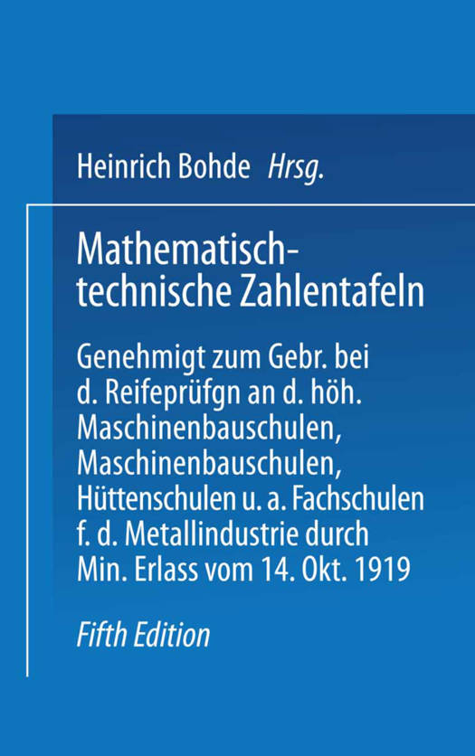 Genehmigt Zum Gebrauch Bei Den Reifeprüfungen an Den Höheren Masehinenbauschulen, Maschinen-Bauschulen, Hüttenschulen Und Anderen Fachschulen Für Die Metallindustrie