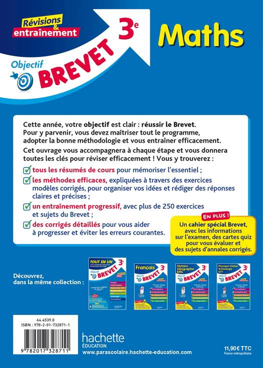 En plus, un « cahier spécial Brevet », avec les informations sur l’examen, des cartes QUIZà découper pour réviser à plusieurs et des sujets d’annales complets corrigés pour se mettre dans les conditions de l’examen.