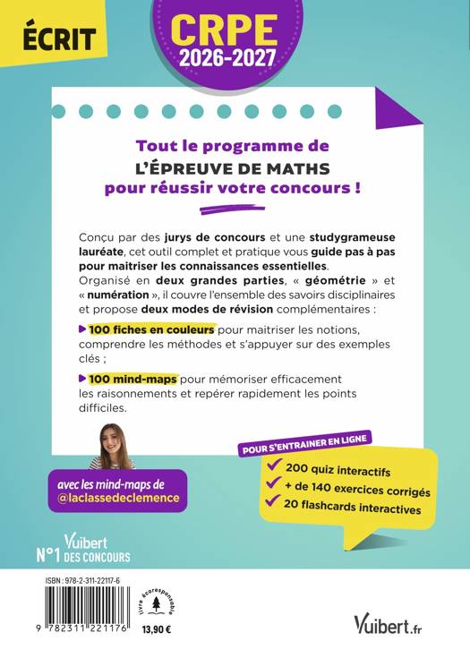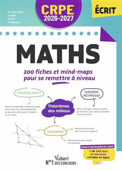 Conçu par des jurys de concours et une studygrameuse lauréate, ce livre complet vous guidera pas à pas pour maîtriser les connaissances essentielles à la réussite de l'épreuve de maths, grâce à ses deux modes de révision complémentaires :
